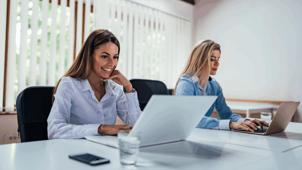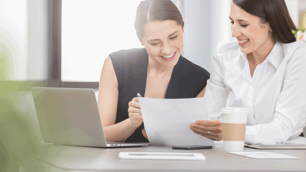 If meeting in person, arrange seating so you’re side by side, able to see each other and present as a team.