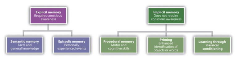The explicit memory, also known as declarative memory, refers to the type of memory that a person is consciously aware of. “You know that you know the information” (Gluck et al., 2020, p. 280). It comprises both memory of facts and general knowledge (semantic memory) and memory of personal experiences (episodic memory).