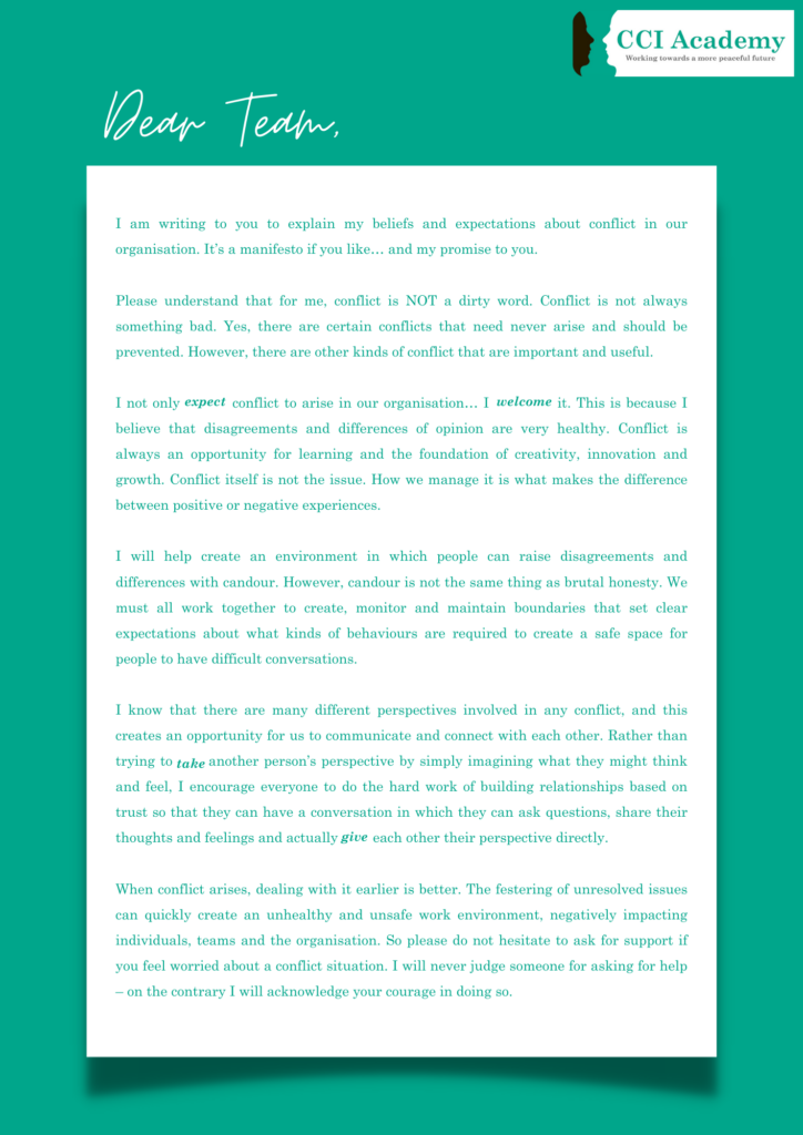 Recently I was a guest on Lizzie Bentley-Bower’s Leadership Letters podcast. In that podcast we talked about the importance of effective conflict management as an essential management skill. Lizzie also asks her guests to write a leadership letter, usually a letter to a leader who you admire.