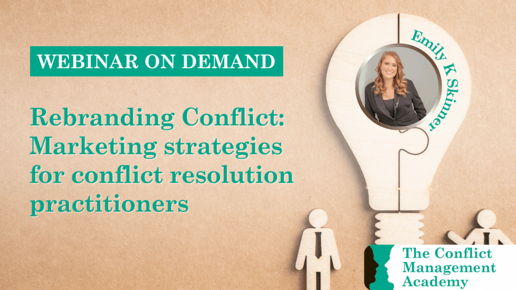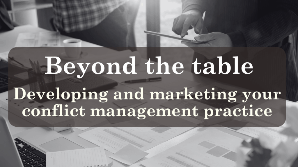 You can also watch webinars presented by Emily Skinner and Elizabeth Stokoe at The Conflict Management Academy using the links below. And if you want to take your marketing / business development further, check out our online Beyond the Table course.