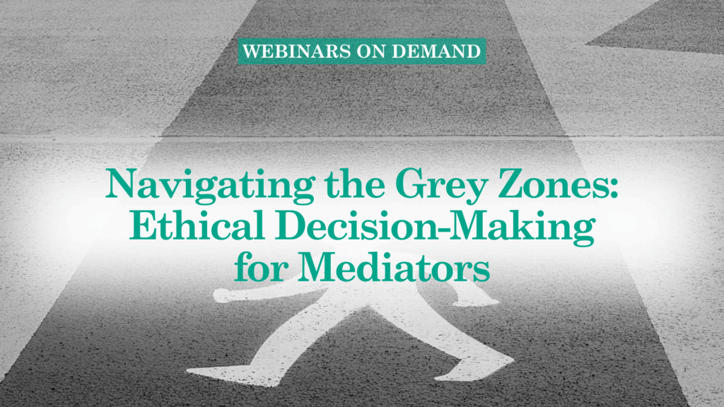 As a mediator, you’re constantly balancing competing duties—impartiality, party self-determination, fairness, and safety. But what happens when these principles collide? This interactive webinar explores common ethical dilemmas mediators face and provides a practical framework to navigate them with confidence and integrity.